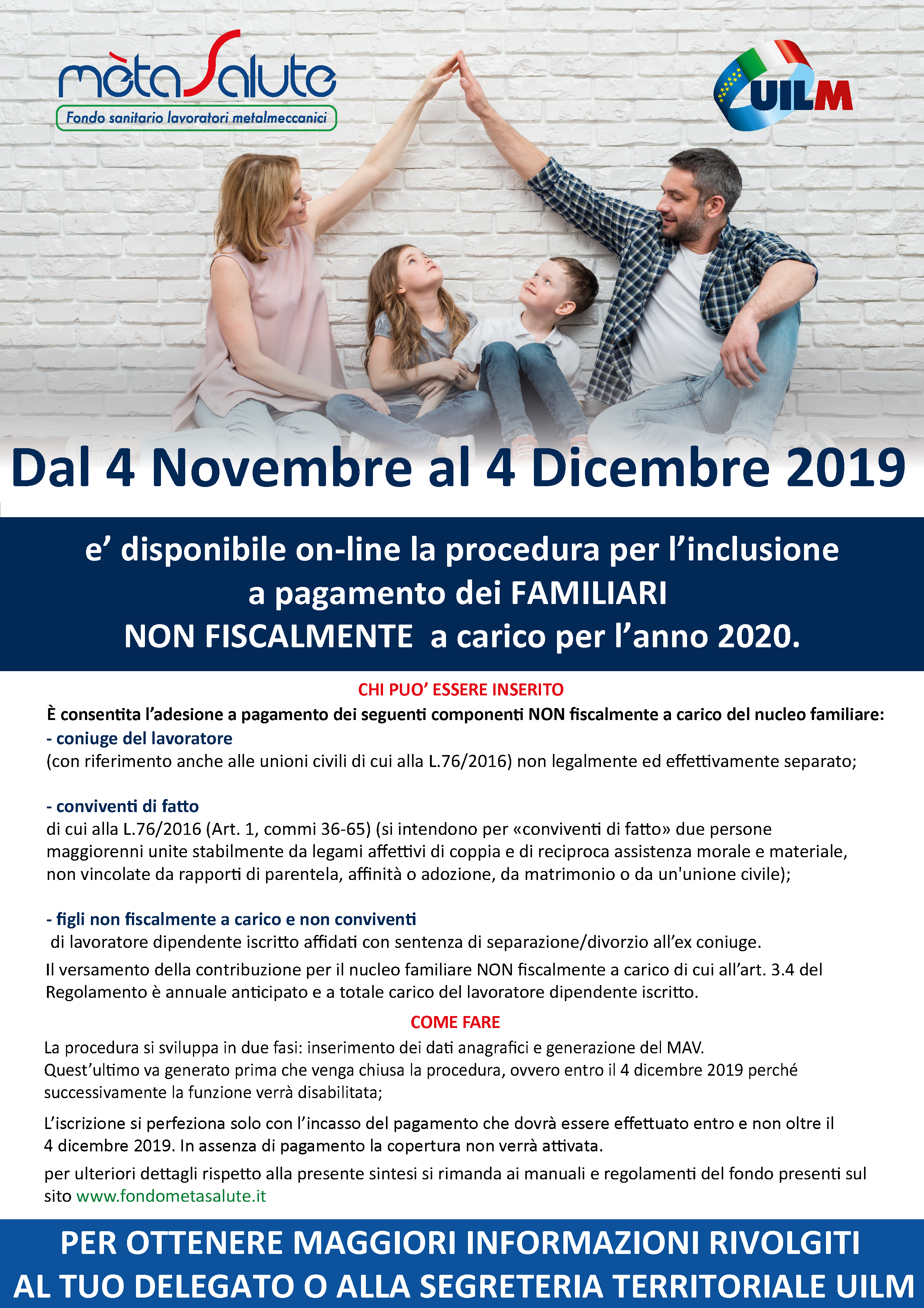 Ecco la procedura per l’inclusione a pagamento dei familiari non fiscalmente a carico